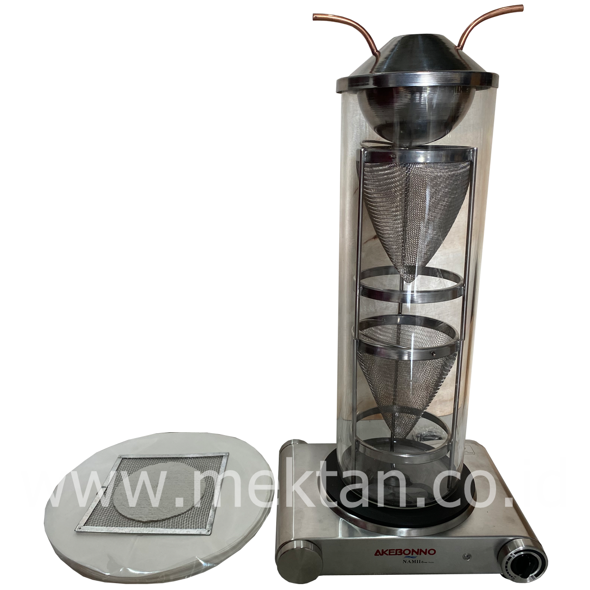 - Kerucut Kasa Kawat (Wire Mesh Cones): Dua buah kerucut (umumnya kapasitas 500g) untuk menahan sampel campuran aspal, dilapisi kertas saring.